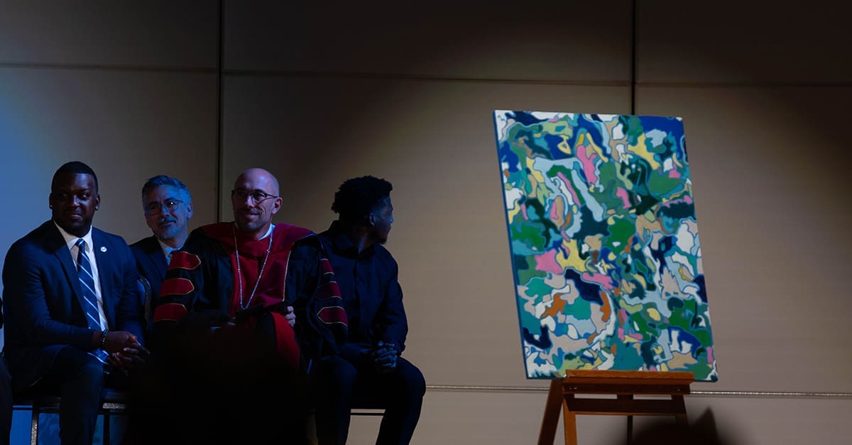 In a touching moment, the Chief of Staff, Jeanine Mozie, presented a commissioned artwork titled “Connection” by senior student Hope McIntosh ’25.