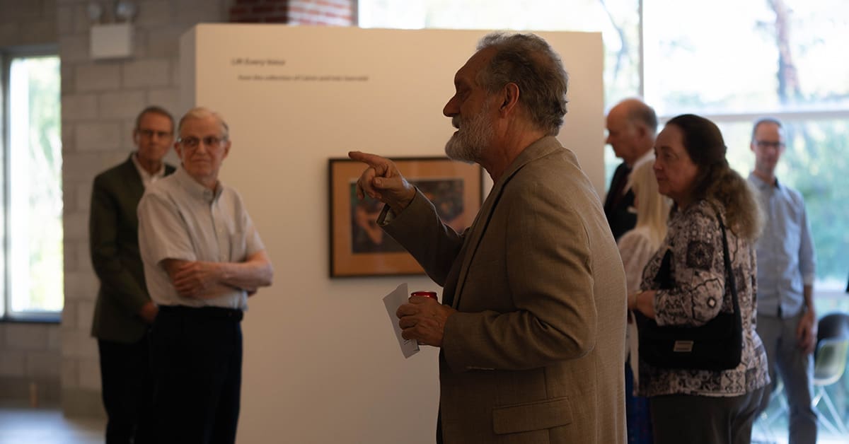 The day of events capped off with Celebrate Creativity in the second-floor lobby of the Art and Communication Center, where a recent installment of artwork from Calvin and Inés Seerveld’s personal collection was unveiled. Emeriti faculty members John Bakker and Michael Vander Weele hosted the reception, which included talks about the nine works in the original donation.